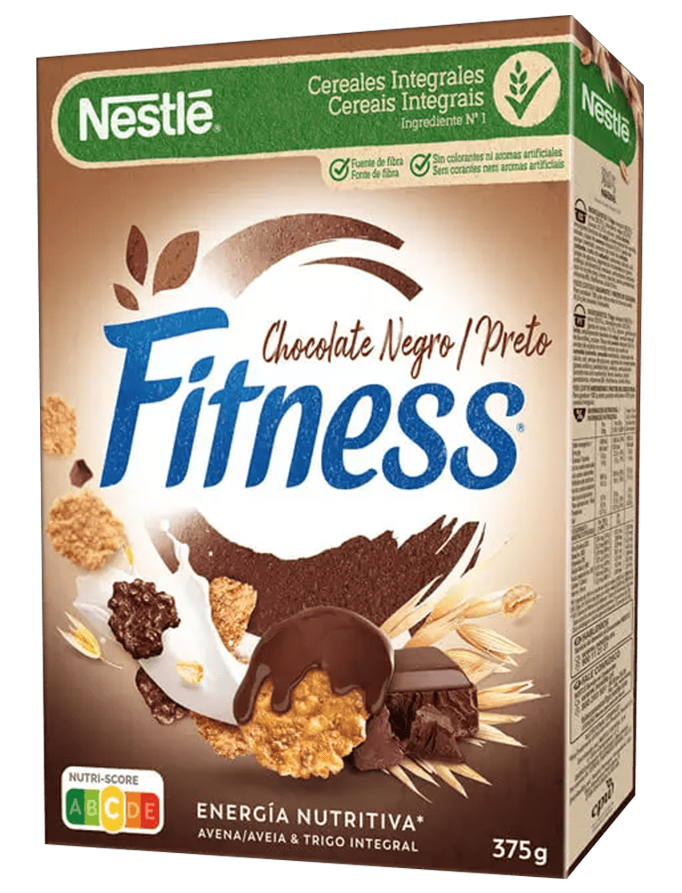 Disfruta de un desayuno equilibrado con los cereales Nestlé Fitness Chocolate Negro. Elaborados con trigo integral y una irresistible cobertura de auténtico chocolate negro, son ricos en fibra y ayudan a mantener una dieta saludable sin renunciar al sabor.